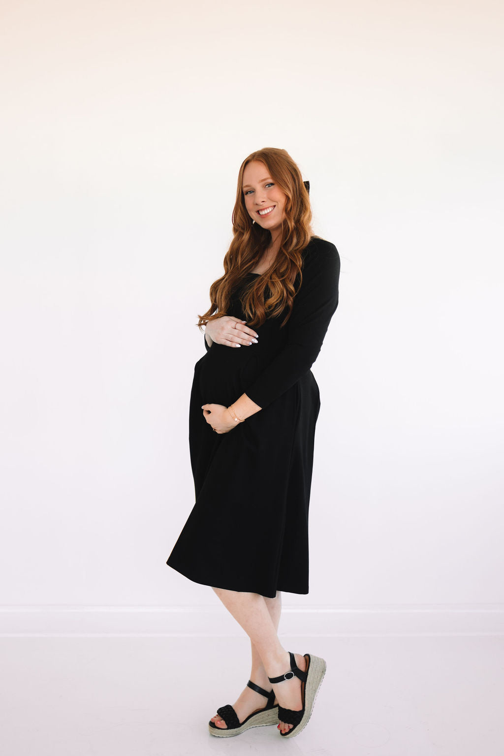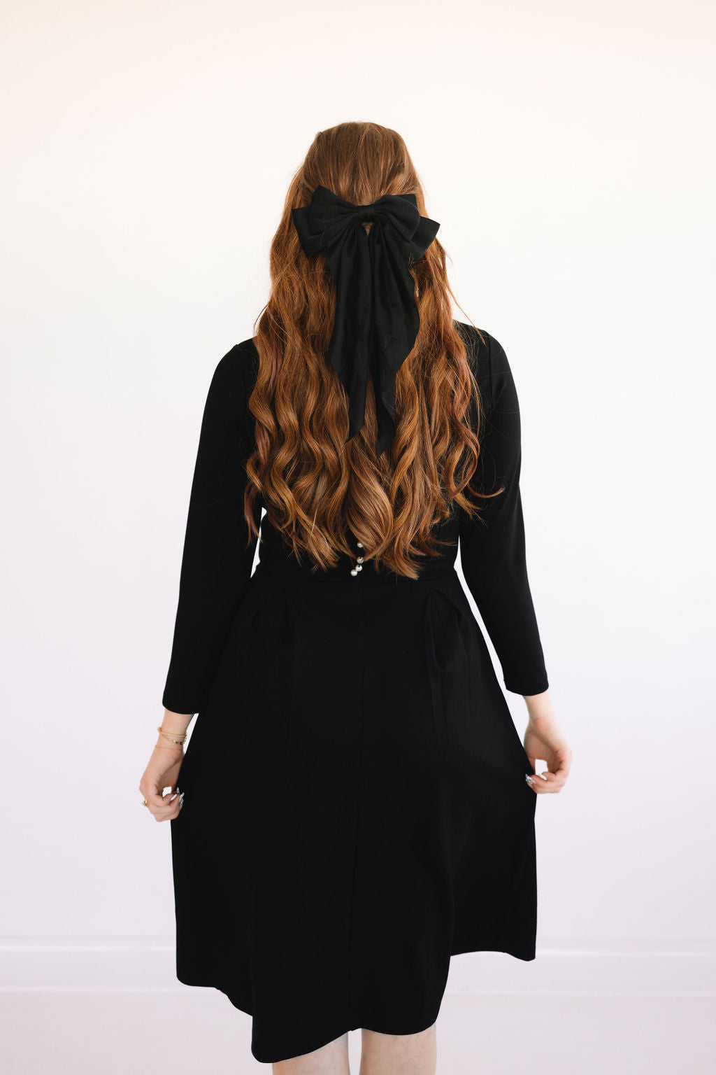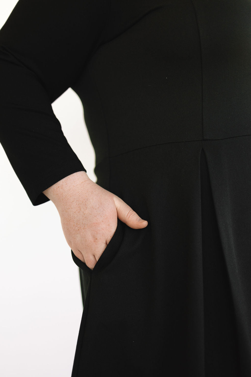 Who said you can't have it all in a dress? The Bella Dress is the definition of the most perfect dress. She comes in the dreamiest fabric that is soft & stretchy! Featuring a square neck, long sleeves, pockets, and an elegant pearl back panel that hides an invisible zipper.