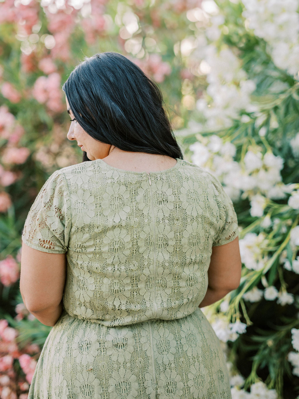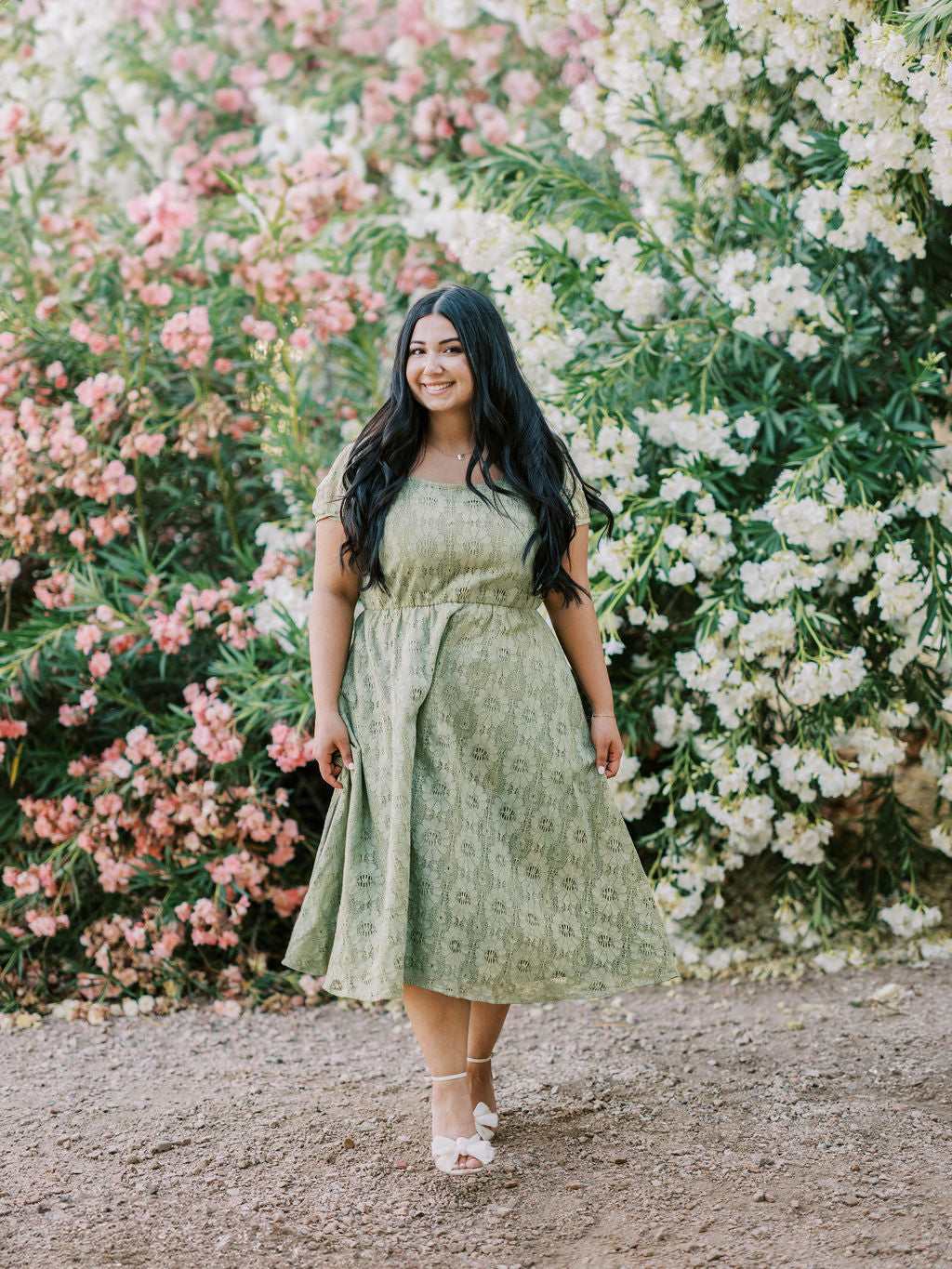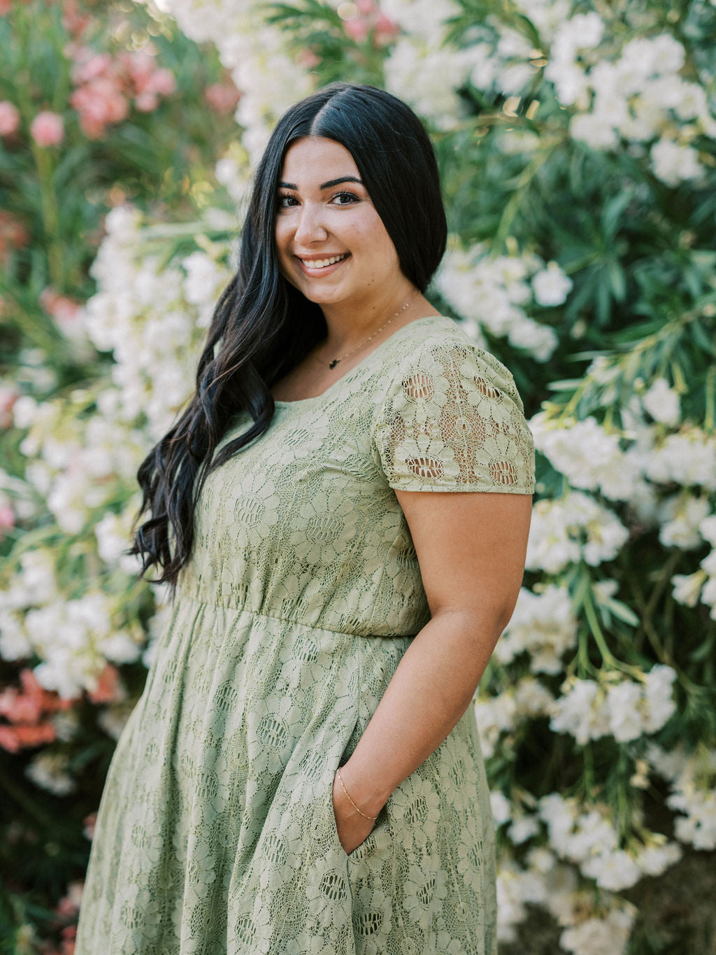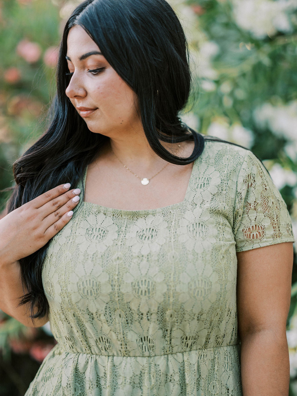 Meet your new favorite dress. The Sophia Dress makes her debut in a beautiful sage green color. This beautiful piece features a square neckline, lace floral overlay, unlined sleeves, elastic waistband for ultimate comfort, and you guessed it- POCKETS. Be ready to spend all your spring & summer days in our Sophia Dress.